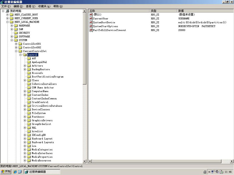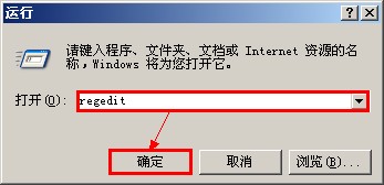 “开始”菜单 → 运行,在运行里输入regedit后,选择“确定”按钮,即进入“注册表编辑器”,如下图所示: