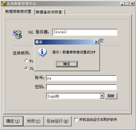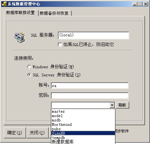 2、先点击“刷新”按钮,再选择SignX8,并确定,提示数据库连接成功即可。如下图所示: